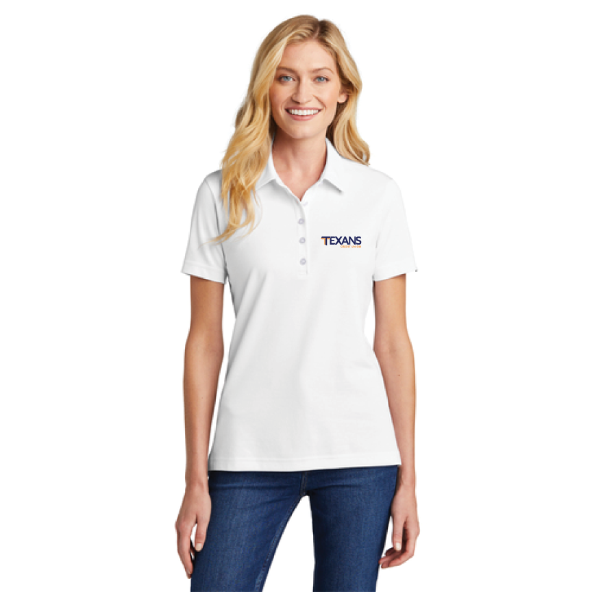 1-ounce, 100% polyester Self-fabric collar Three-button placket with dyed-to-match buttons TM logo printed at center back neck TM logo woven label at left sleeve Open hem sleeves